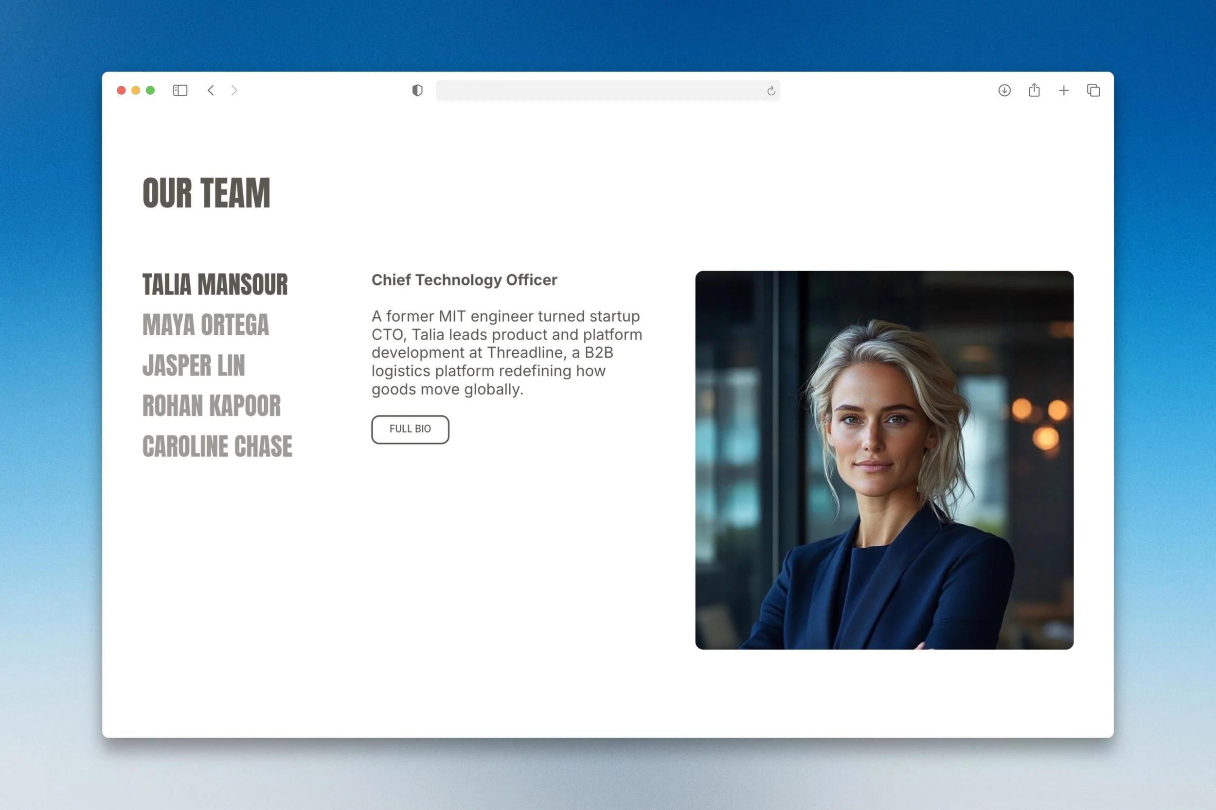 A former MIT engineer turned startup CTO, Talia leads product and platform development at Threadline, a B2B logistics platform redefining how goods move globally.